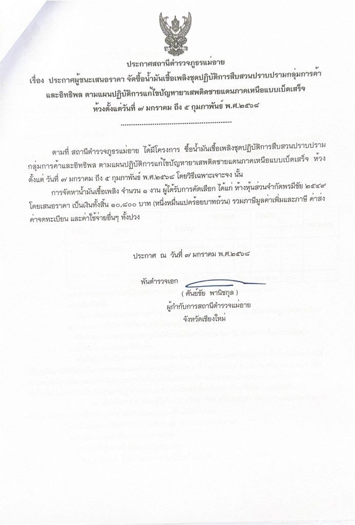 ประกาศซื้อวัสดุน้ำมันเชื้อเพลิง กิจกรรมการ สกัดกั้น ปราบปราม การผลิต การค้ายาเสพติด