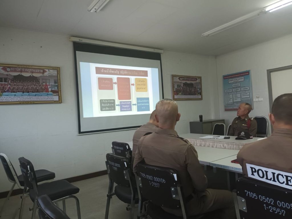 มอบหมายให้ พ.ต.ท.นิวัติ วรรณมณี รอง ผกก.ป.สภ.แม่อาย และ พ.ต.ต.ประทีป วงค์แพทย์ สวป.สภ.แม่อาย ประชุมชี้แจงข้อกำหนดและแนวทางการปฏิบัติตาม พ.ร.บ.ป้องกันปราบปรามการทรมานและการกระทำให้บุคคลสูญหาย พ.ศ.2566 แก่หัวหน้าสายตรวจ ชุดสายตรวจ ชุดจราจร และสายตรวจตำบลทุกตู้ เพื่อให้เกิดความเข้าใจและปฏิบัติในทางเดียวกันตามที่ พ.ร.บ.กำหนด เพื่อมิให้เกิดข้อผิดพลาดในการจับกุมจนเป็นเหตุให้เกิดการฟ้องร้องหรือร้องเรียนเจ้าหน้าที่ผู้ปฏิบัติหน้าที่ในชั้นจับกุม