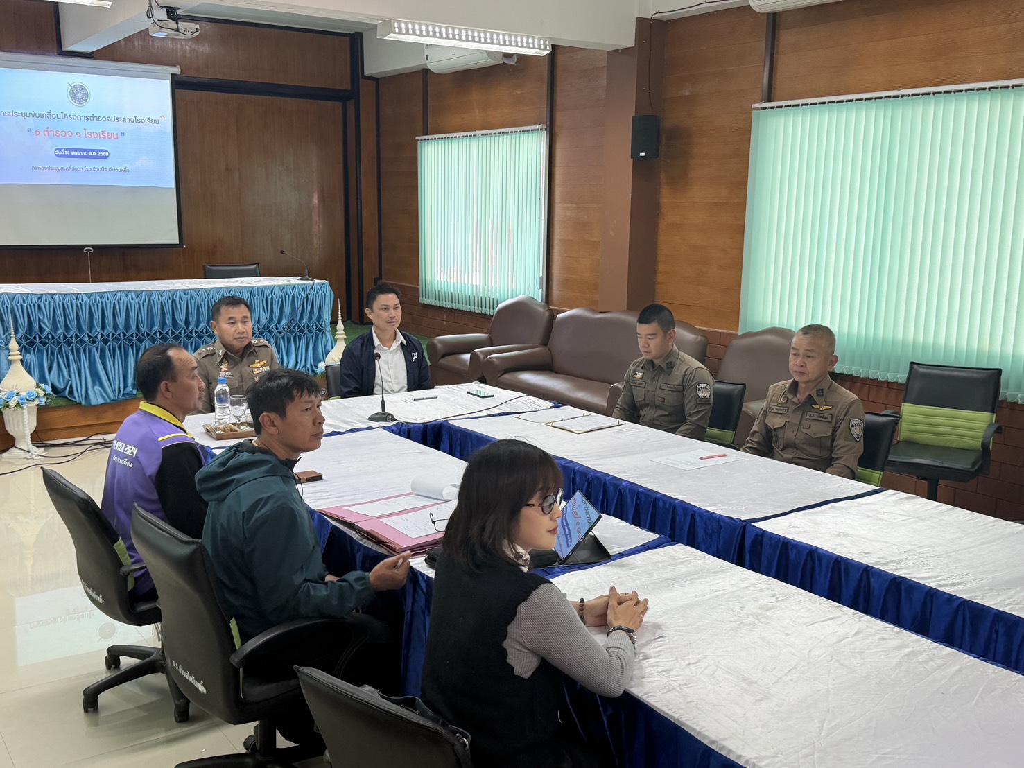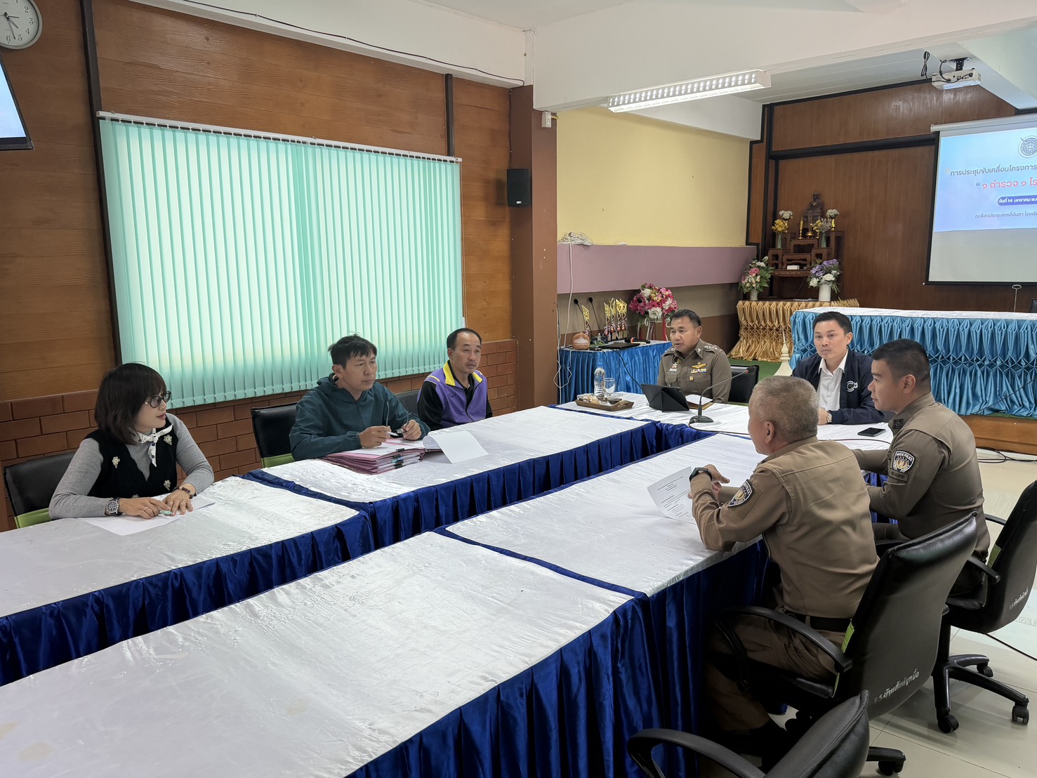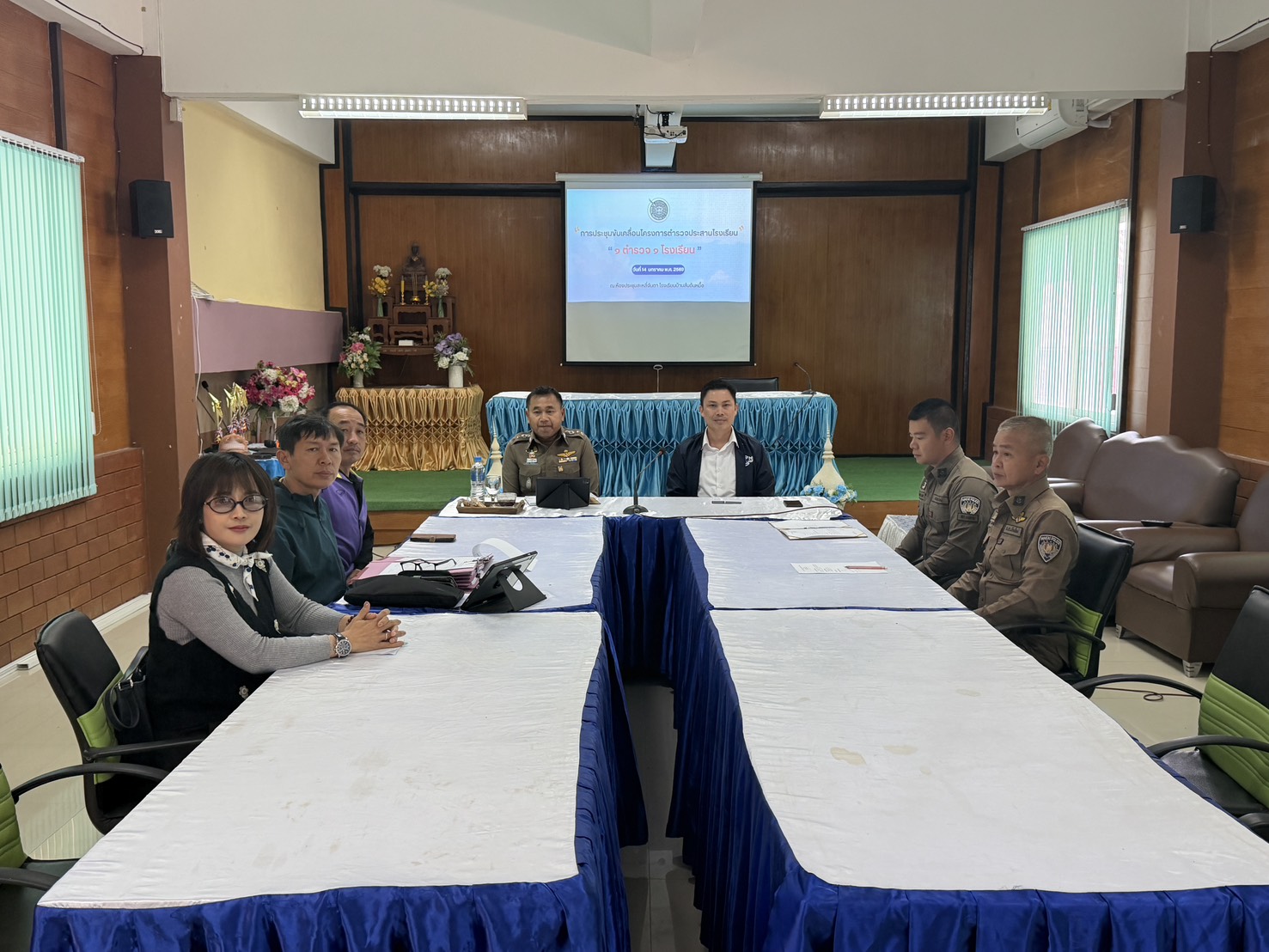 พ.ต.อ.พงษ์ธรรศ เจริญปรีชญาพงษ์ ผกก.สภ.แม่อาย พร้อมด้วย พ.ต.ท.อรุณ พงษ์ธนวิภากร สวป.(ชส) สภ.แม่อาย ร่วมประชุมขับเคลื่อนโครงการตำรวจประสานโรงเรียน “1 ตำรวจ 1 โนงเรียน” ณ ห้องประชุมสะหลี๋จันตา โรงเรียนสันต้นหมื้อ ต.สันต้นหมื้อ อ.แม่อาย จ.เชียงใหม่