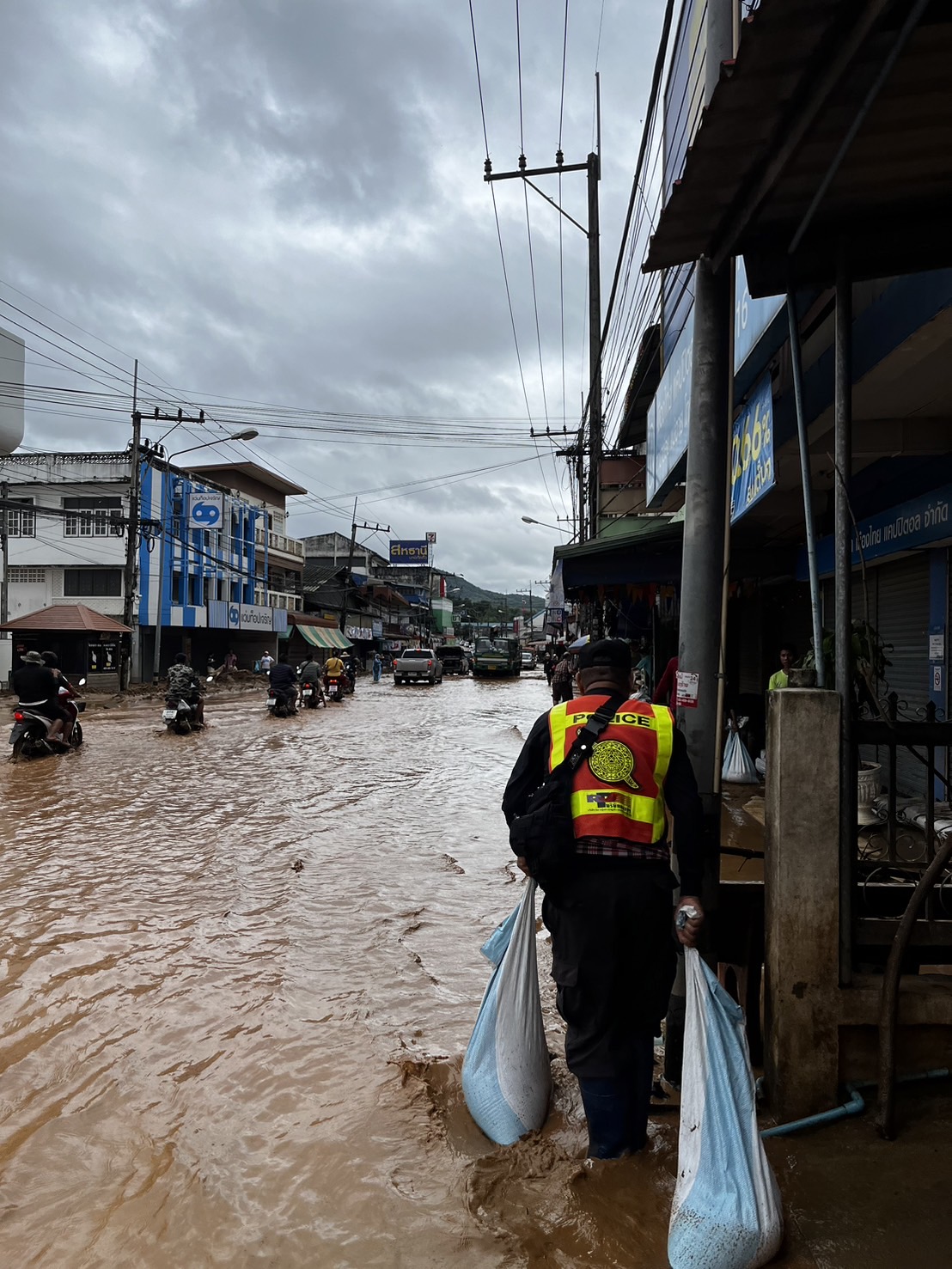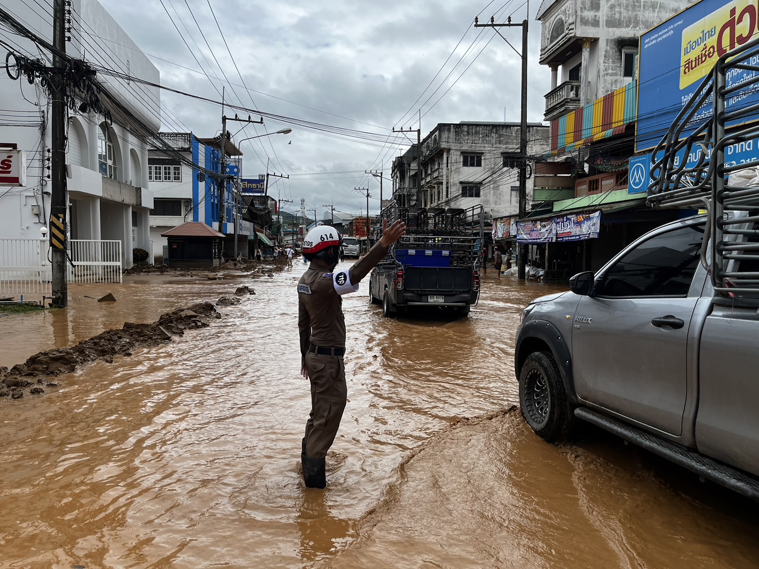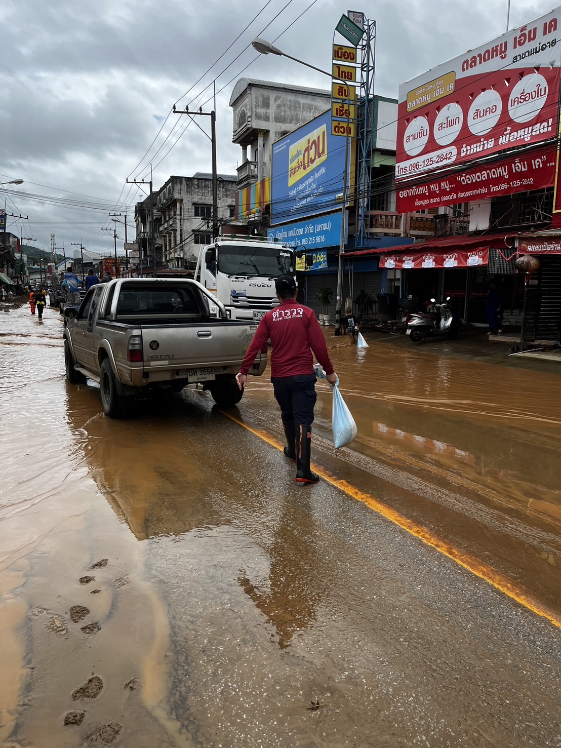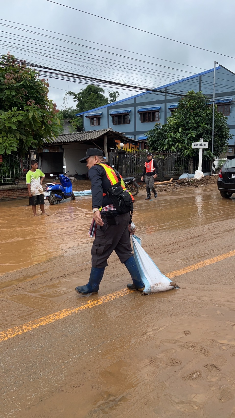 พ.ต.อ.ศันย์ชัย พานิชกุล ผกก.สภ.แม่อาย ได้ทำการลงพื้นที่ตรวจสอบ ช่วยเหลือประชาชน จากสถานการณ์น้ำหลาก ฝนตกชุกต่อเนื่อง ผลพวงจากพายุ “ยางิ” จุดที่ได้รับผลกระทบในวันนี้จะมีบริเวณถนนสายหลัก ช่วงระหว่างหน้าเกษตรอำเภอแม่อาย ไปจนถึงหน้าไปรษณีย์แม่อาย มีดินโคลนที่ลอยมากับน้ำทำให้ถนนเส้นทางจัญจร ทำให้รถไม่สามารถวิ่งสวนเลนกันได้ การจราจรติดขัดเป็นระยะทางเกือบ 2 กม. ได้จัดกำลังเข้าช่วยเหลือด้านการจราจรร่วมกับหน่วยงานใกล้เคียง เพื่ออำนวยความสะดวกให้กับประชาชนในการสัญจรได้อย่างปลอดภัย