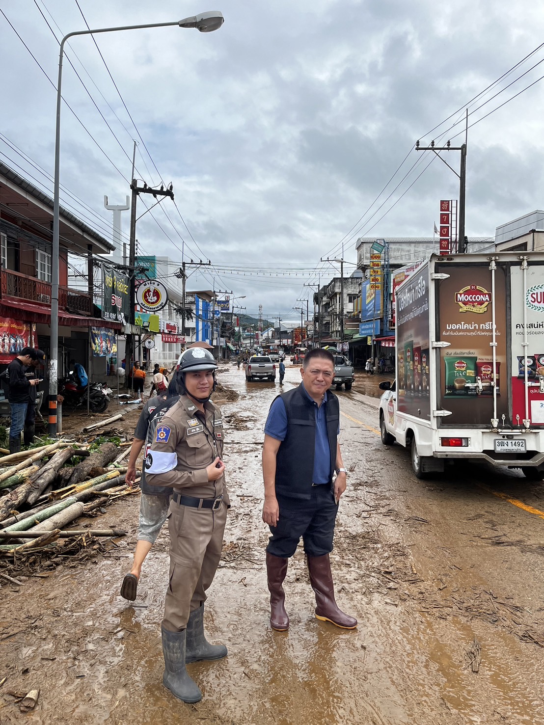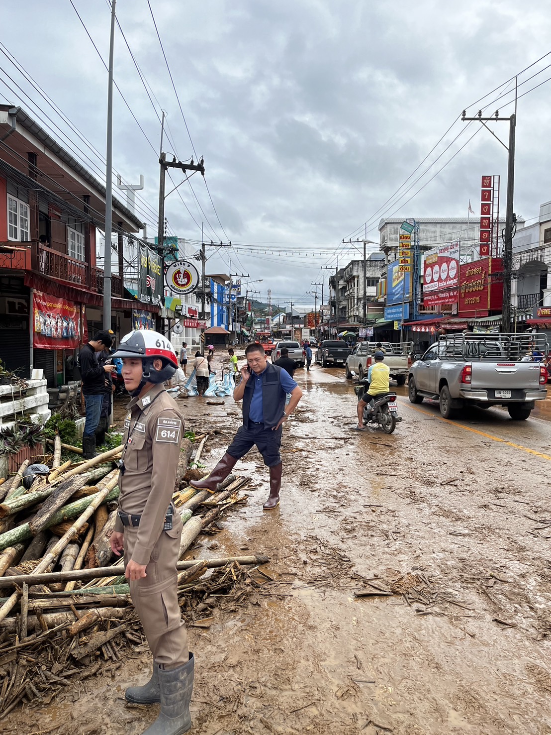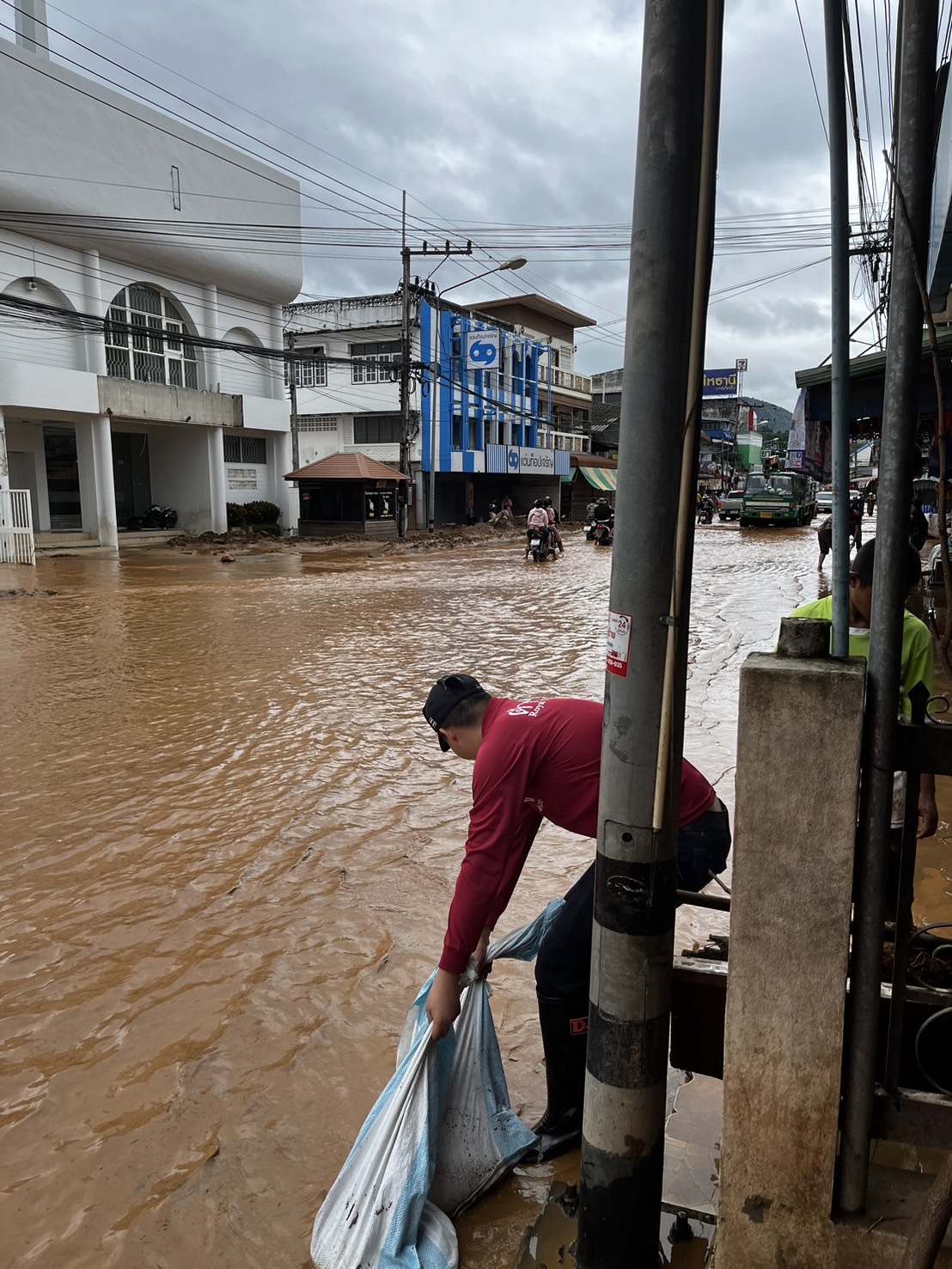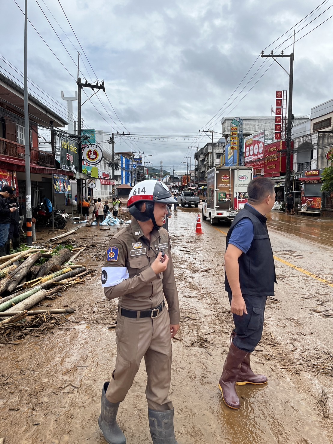 พ.ต.อ.ศันย์ชัย พานิชกุล ผกก.สภ.แม่อาย ได้ทำการลงพื้นที่ตรวจสอบ ช่วยเหลือประชาชน จากสถานการณ์น้ำหลาก ฝนตกชุกต่อเนื่อง ผลพวงจากพายุ “ยางิ” จุดที่ได้รับผลกระทบในวันนี้จะมีบริเวณถนนสายหลัก ช่วงระหว่างหน้าเกษตรอำเภอแม่อาย ไปจนถึงหน้าไปรษณีย์แม่อาย มีดินโคลนที่ลอยมากับน้ำทำให้ถนนเส้นทางจัญจร ทำให้รถไม่สามารถวิ่งสวนเลนกันได้ การจราจรติดขัดเป็นระยะทางเกือบ 2 กม. ได้จัดกำลังเข้าช่วยเหลือด้านการจราจรร่วมกับหน่วยงานใกล้เคียง เพื่ออำนวยความสะดวกให้กับประชาชนในการสัญจรได้อย่างปลอดภัย