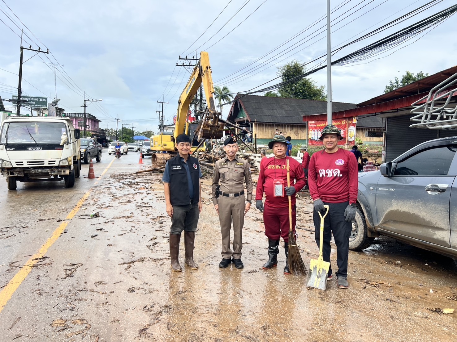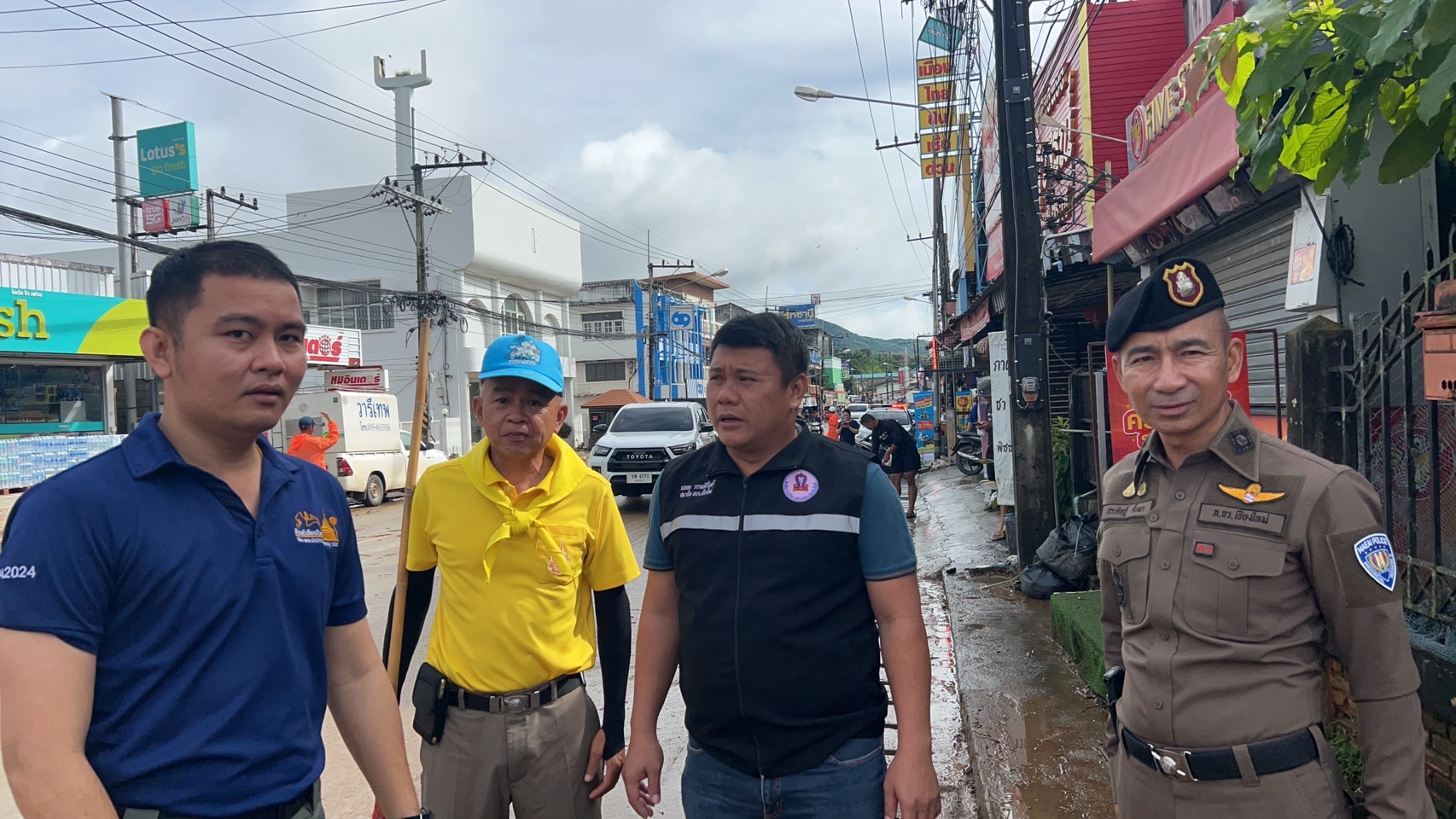 พ.ต.อ.ประดิษฐ์ ติ๊บมา ผกก.สภ.แม่อาย, พ.ต.ท.นพดล ตันมาดี รอง ผกก.ป.ฯ, พ.ต.ท.ประทีป วงค์แพทย์ สวป.ฯ, พ.ต.ต.อรุณ พงษ์ธนวิภากร สวป.(ชส.)ฯ พร้อมข้าราชการตำรวจ ร่วมออกตรวจสอบและให้ความช่วยเหลือประชาชน พร้อมทั้งจัดเจ้าหน้าที่จราจรอำนวยความสะดวกด้านการจราจร กรณีน้ำหลากและน้ำท่วมจากสถานการณ์ฝนตกต่อเนื่องในพื้นที่บริเวณหน้าตลาดแม่อาย