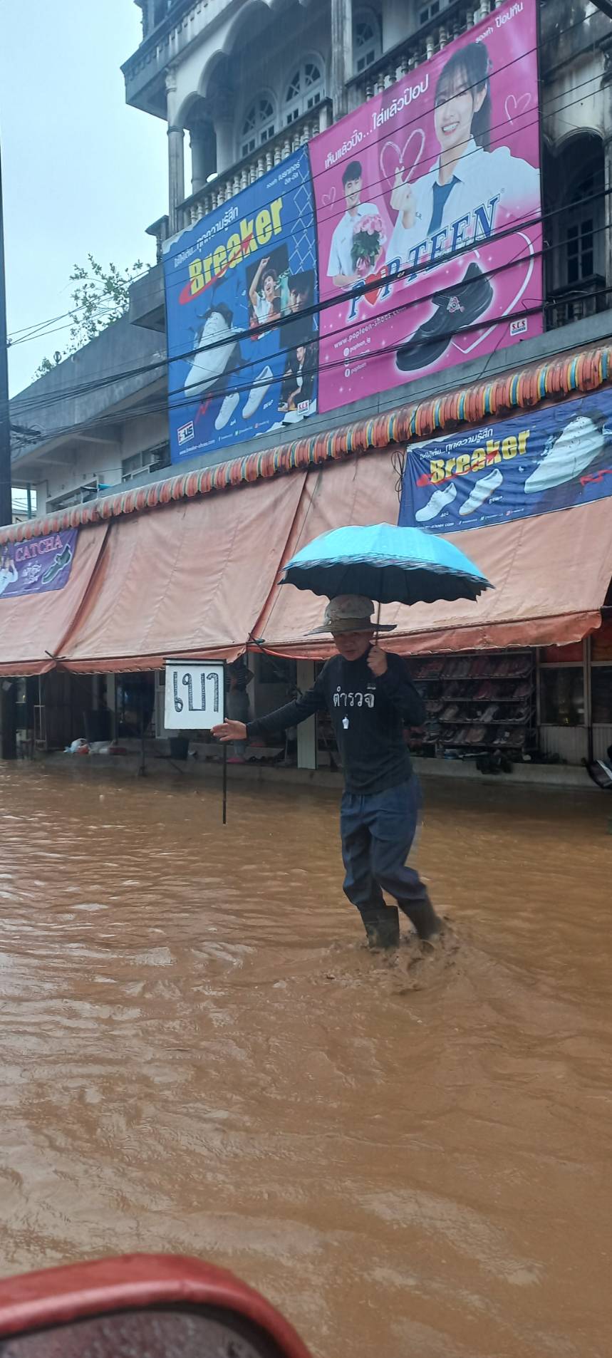 วันที่ 10 ก.ย.67 โดยการอำนวยการของ พ.ต.อ.ศันย์ชัย พานิชกุล ผกก.สภ.แม่อาย, พ.ต.ท.นิวัติ วรรณมณี รอง ผกก.ป.ฯ มอบหมายให้ พ.ต.ต.ประทีป วงค์แพทย์ สวป.ฯ ให้ข้าราชการตำรวจช่วยเหลืออำนวยความสะดวกด้านการจราจร และสำรวจในแต่ละพื้นที่ เนื่องจากสถานการณ์น้ำหลาก ฝนตกชุกต่อเนื่อง ผลพวงจากพายุ “ยางิ” เข้าทำการช่วยเหลือและรายงานให้ผู้บังคับบัญชาทราบ จุดที่ได้รับผลกระทบในวันนี้จะมีบริเวณถนนสายหลัก ช่วงระหว่างหน้าเกษตรอำเภอแม่อาย ไปจนถึงหน้าไปรษณีย์แม่อาย น้ำได้เอ่อท่วมถนนเส้นทางจัญจร ทำให้รถไม่สามารถวิ่งสวนเลนกันได้ เป็นระยะทางเกือบ 2 กม. ได้จัดกำลังเข้าช่วยเหลือด้านการจราจรร่วมกับหน่วยงานใกล้เคียง เพื่ออำนวยความสะดวกให้กับประชาชนในการสัญจรได้อย่างปลอดภัย