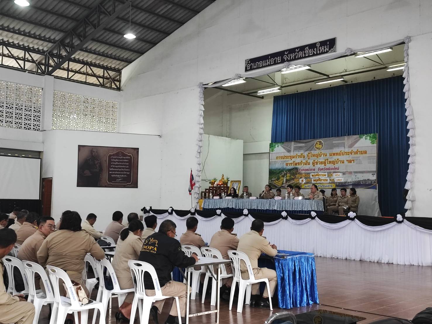 พ.ต.อ.ประดิษฐ์ ติ๊บมา ผกก.สภ.แม่อาย, พ.ต.ท.นพดล ตันมาดี รอง ผกก.ป.สภ.แม่อาย มอบหมายให้ พ.ต.ต.อรุณ พงษ์ธนวิภากร สวป.(ชส.) สภ.แม่อาย และ ร.ต.อ.สาคร กองมา รอง สวป.สภ.แม่อาย เข้าร่วมการประชุมกำนัน ผู้ใหญ่บ้าน แพทย์ประจำตำบลสารวัตรกำนัน ผู้ช่วยผู้ใหญ่บ้าน ฯลฯ