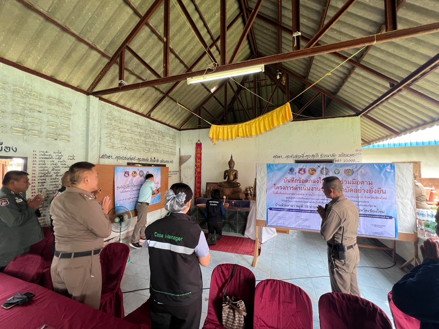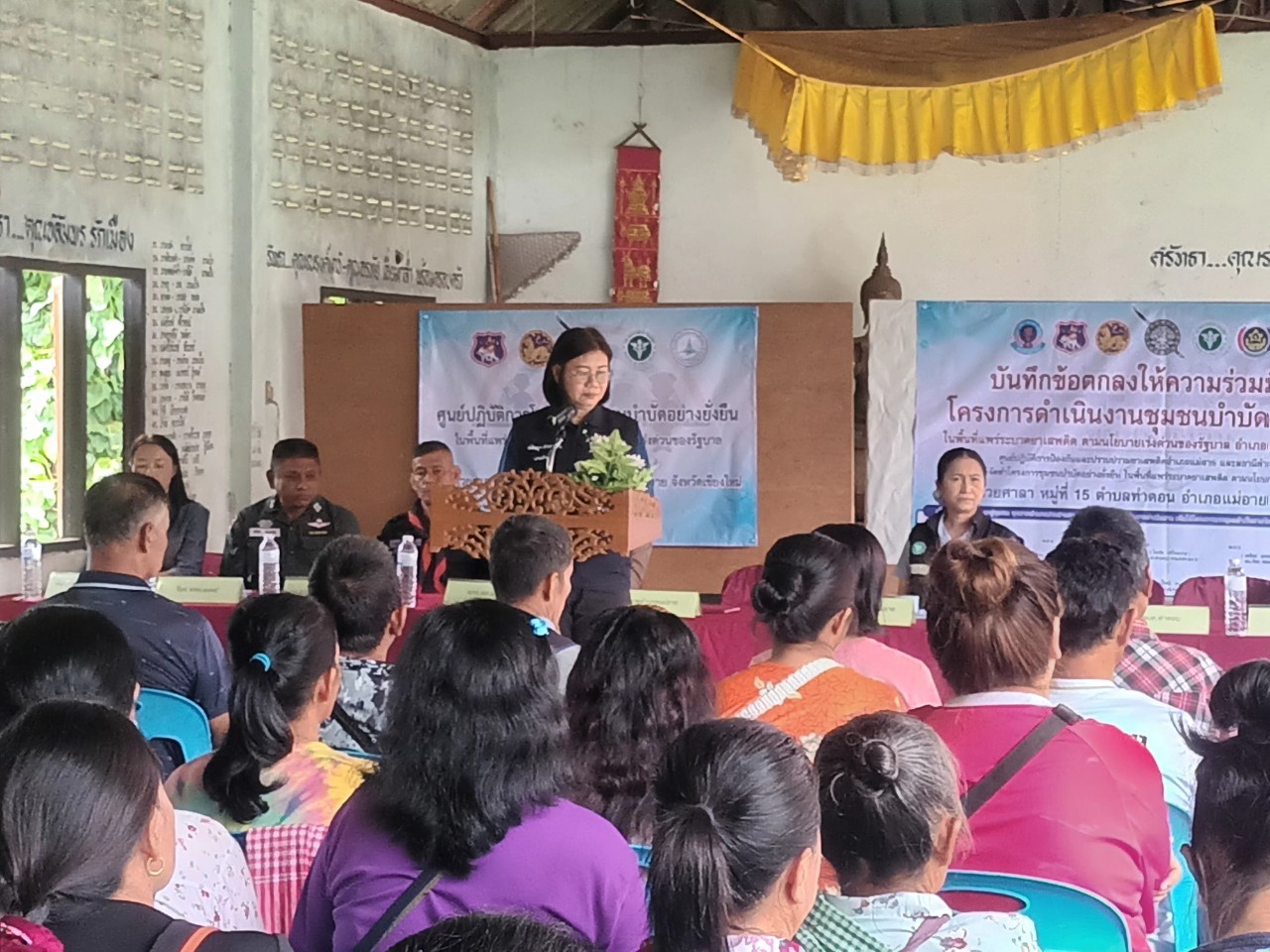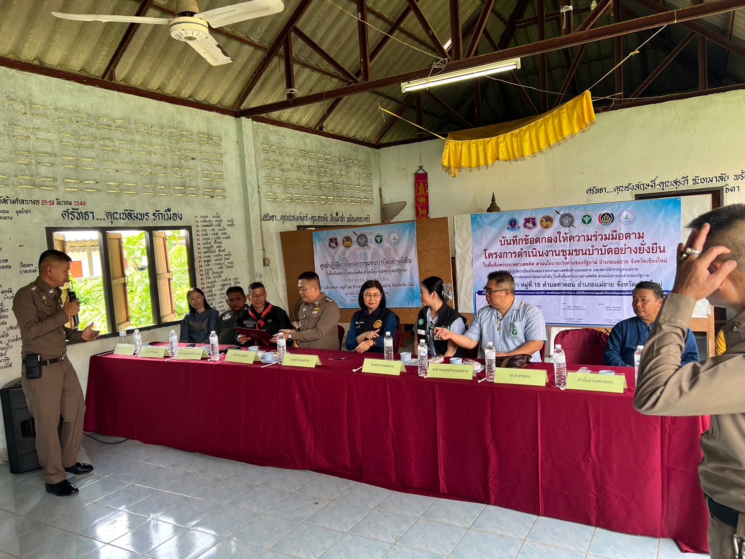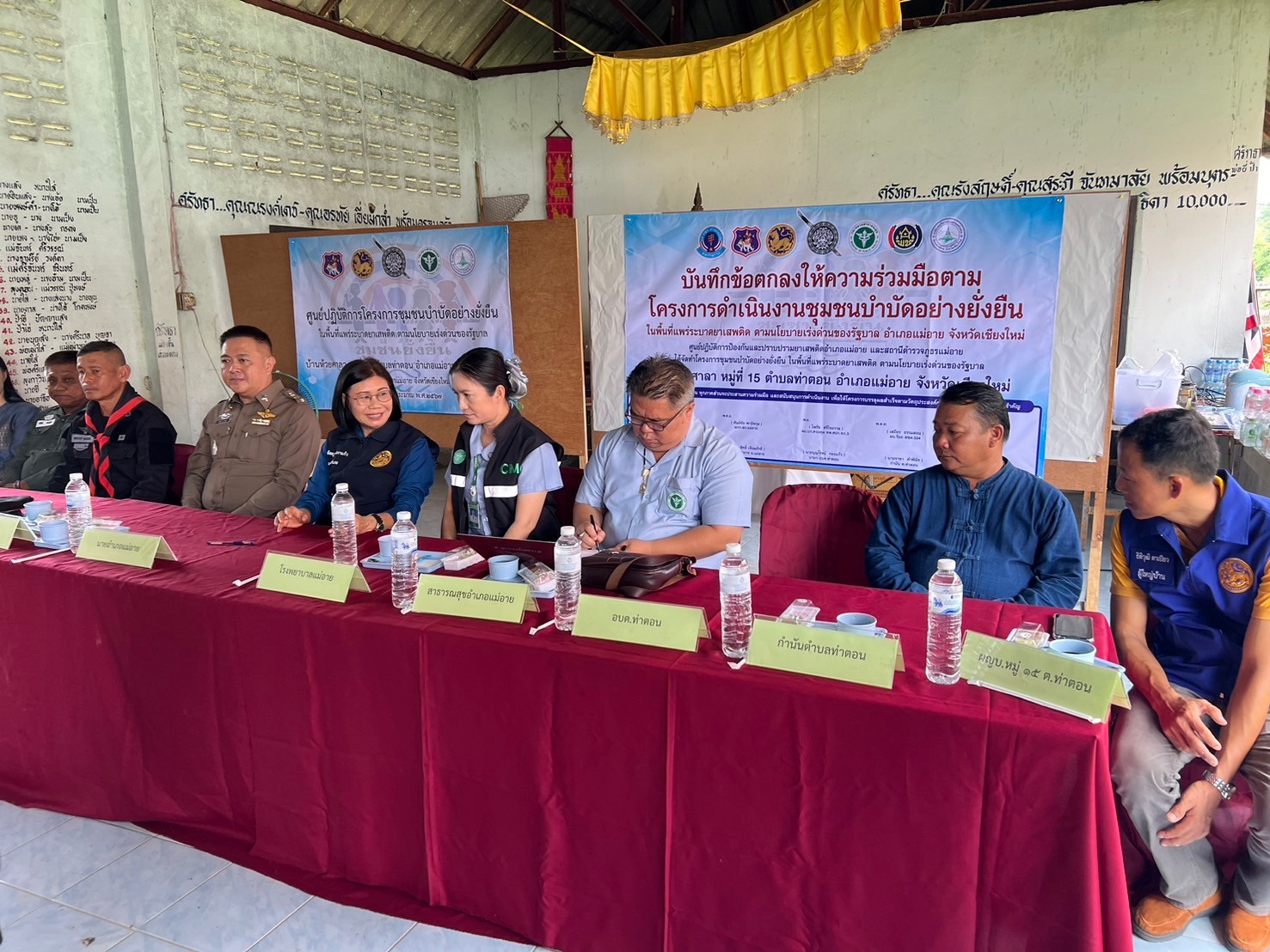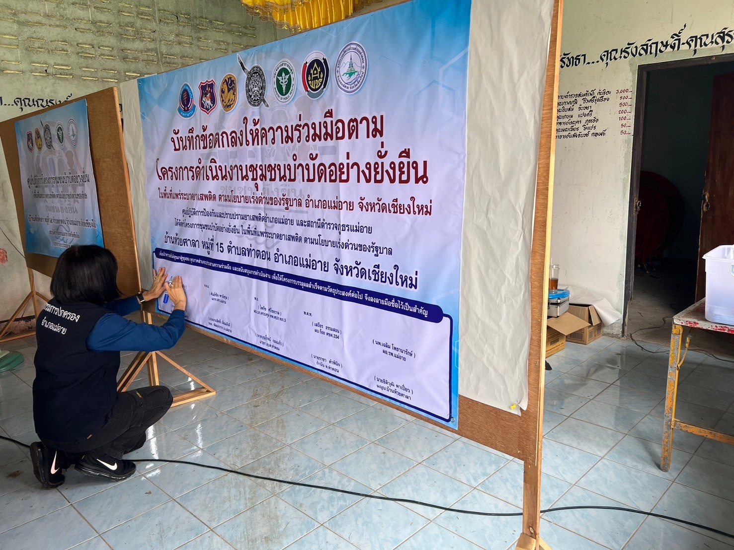ร่วมพิธีเปิดและลงนามความร่วมมือ( MOU ) ” โครงการชุมชนบำบัดอย่างยั่งยืนในพื้นที่แพร่ระบาดยาเสพติด ตามนโยบายเร่งด่วนของรัฐบาล ” และเปิดศูนย์ฯปฏิบัติการ ฯ ณ ศาลาอเนกประสงค์ บ้านห้วยศาลา ม.15 ต.ท่าตอน อ.แม่อาย จว.เชียงใหม่ โดยมี นางสลีลญา คำภาแก้ว นายอำเภอแม่อาย เป็นประธานในพิธีเปิ