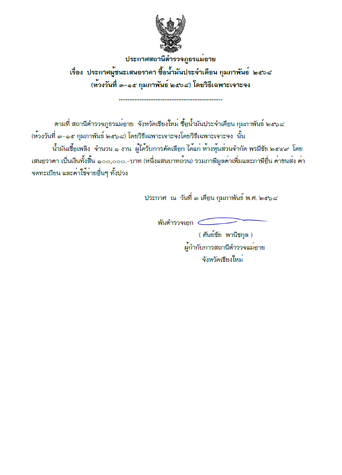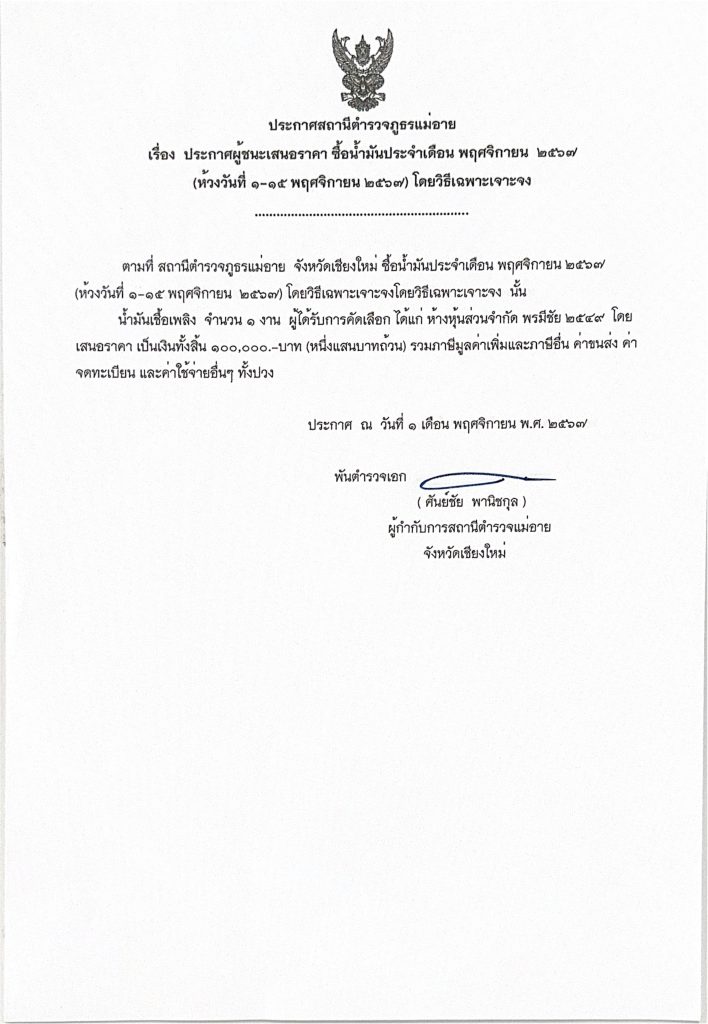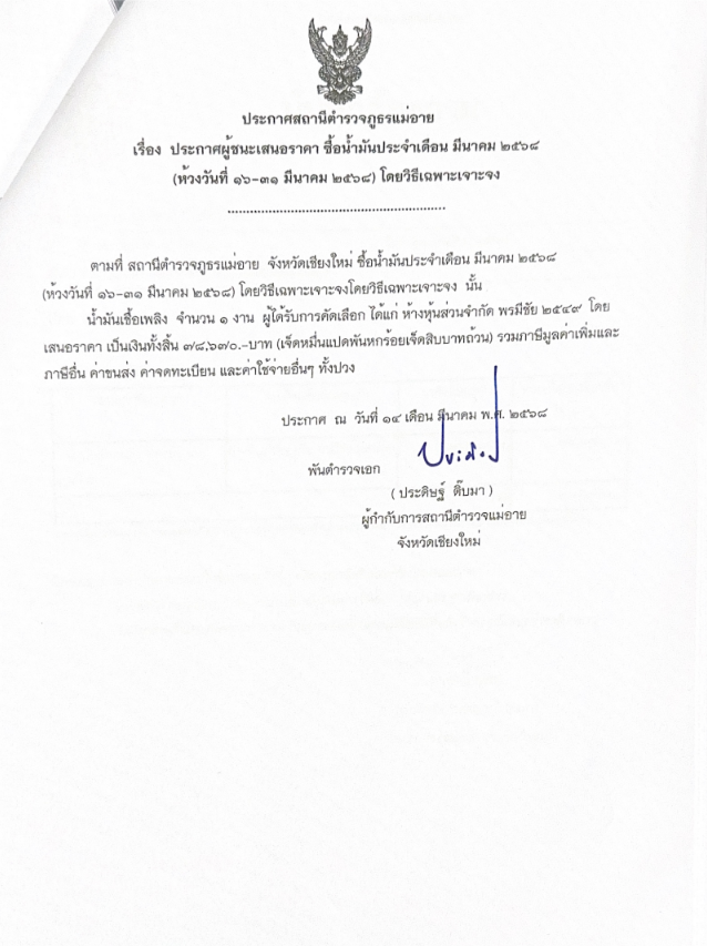 ประกาศผู้ชนะเสนอราคาน้ำมัน