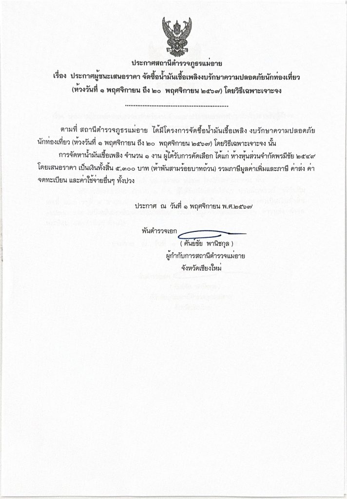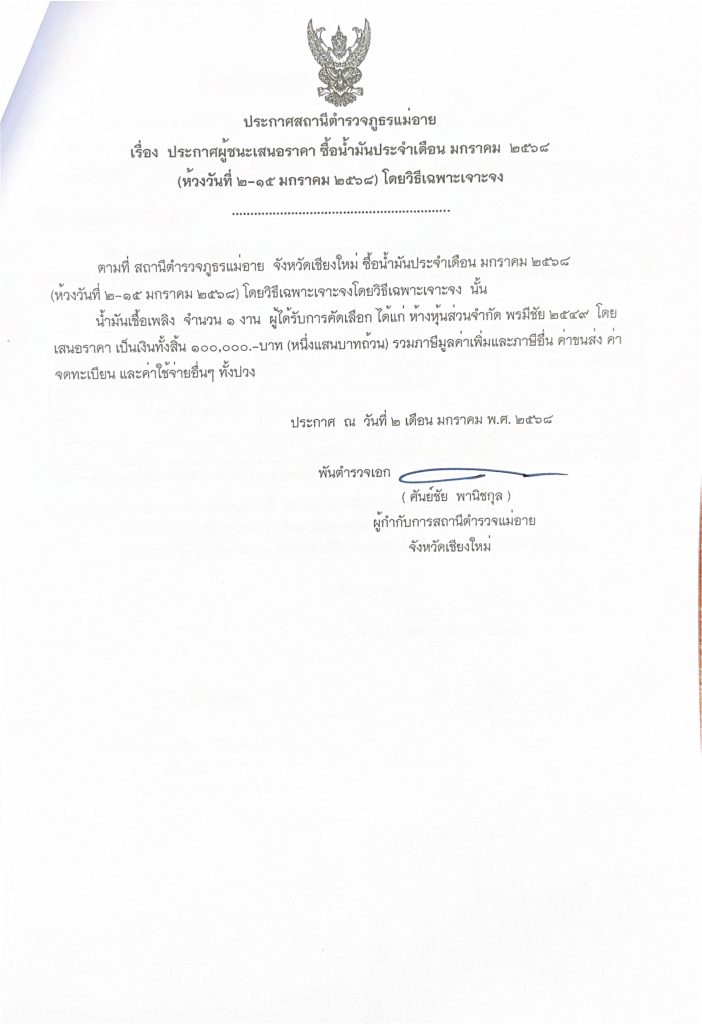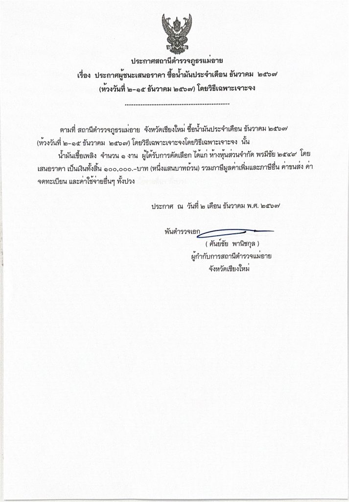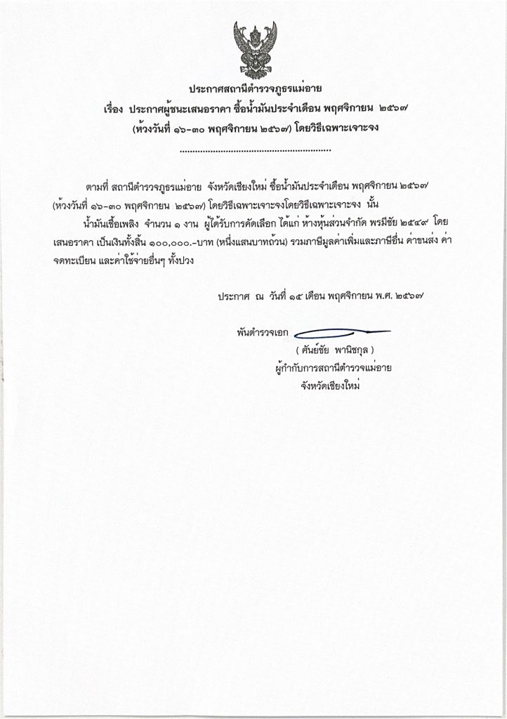 ประกาศผู้ชนะเสนอราคาซื้อน้ำมัน