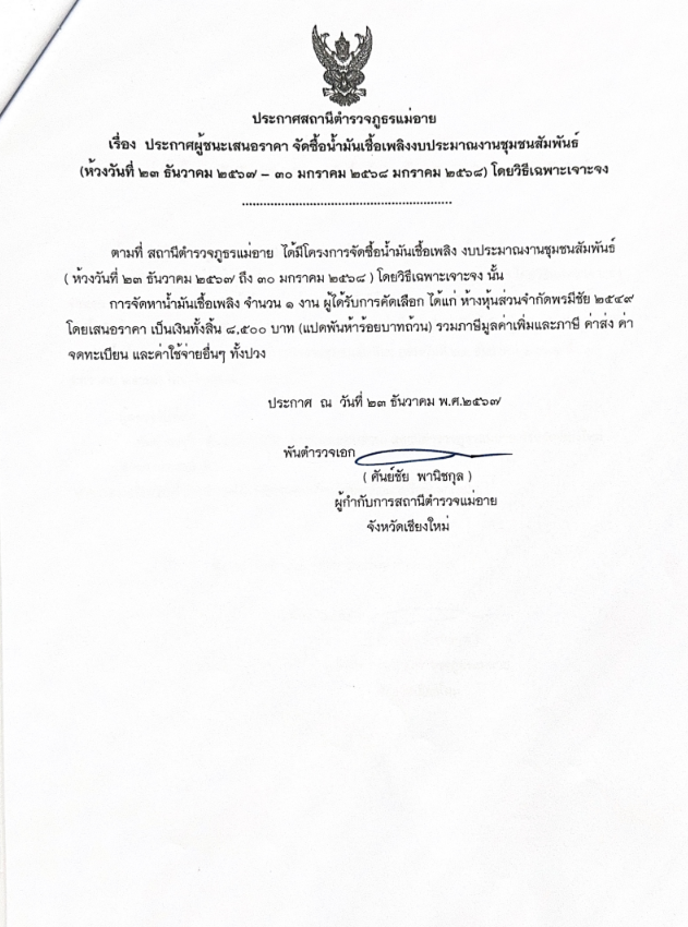 ประกาศซื้อวัสดุน้ำมันเชื้อเพลิง กิจกรรมงานชุมชนและมวลชนสัมพันธ์